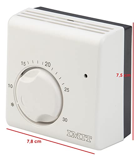 CARATTERISTICHE TECNICHE | Le dimensioni del termostato sono 10.8x9.6x4.8 cm. Realizzato in tecnopolimero antiurto. La portata sui contatti è 10 (2,5) A 250V. Il prodotto è 100& Made in Italy, e la sua qualità è certificata dall'Istituto Italiano del Marchio di Qualità (IMQ).