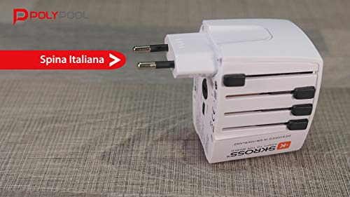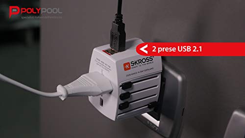 POLY POOL - PP2209 Adattatore Skross Micro MUV da Viaggio - Adattatore Universale 4 Spine a 2 Poli - 2 Prese USB - Tensione e Potenza 100V - 250W / 250V - 625W