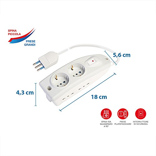 La forma compatta della multipresa consente di inserire fino a 6 spine in uno spazio molto ridotto