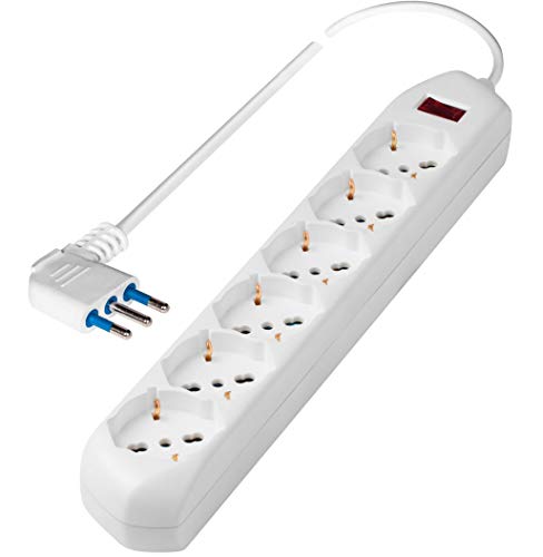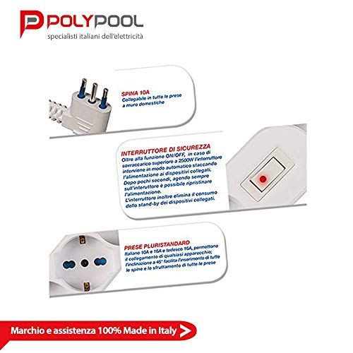 Poly Pool PP2516 Presa Multipla Multisize con 6 Prese Pluristandard, 1.5 m Cavo e Interruttore di Sicurezza, Bianco