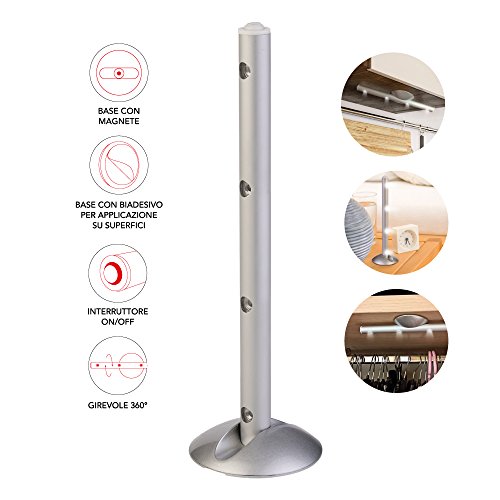 Poly Pool PP3111 STILUX Lampada LED Multiuso Regolabile In Alluminio Tubo Con Base di Fissaggio e Magnete Per Armadi Sottopensili Cucine Librerie Scrivanie