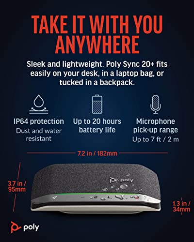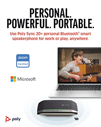 Poly Sync 20+, Vivavoce per Conferenze Senza Filo, Connessione Bluetooth 5.1 e USB-A, Audio Full Duplex con Riduzione Rumore ed Eco, Autonomia 20 Ore, Compatibile con Windows 10 e macOS, Nero