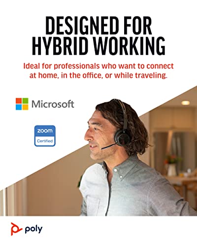 Poly Voyager Focus 2 UC Cuffie wireless + base di ricarica (Plantronics), microfono con cancellazione attiva del rumore (ANC), connessione a PC/Mac/mobile tramite Bluetooth, Teams, Zoom e altro ancora