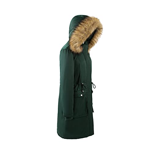 Polydeer Piumino vegano, con cappuccio, classico impermeabile e spesso, con pelliccia sintetica, caldo parka da donna con cerniera su tutta la lunghezza, Verde2, S