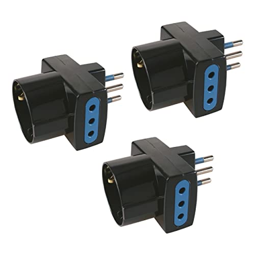 ADATTATORE PRESA SCHUKO - Kit da 3 Adattatori Presa Tedesca e Italiana colore nero compatibile con tutti i tuoi elettrodomestici e apparecchiature elettroniche, Adattatori Pluristandard con spina 10A 2P+T, 2 prese Italiane 10A 2P+T e 1 Presa 10-16A 2P+T (standard italiano 10A e tedesco 16A con terra laterale)