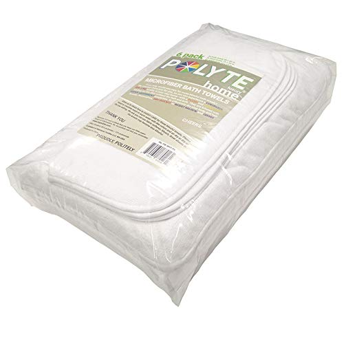 Polyte - asciugamano bagno in microfibra anti-pelucchi - ad asciugatura rapida - set 6 pezzi (Bianco)