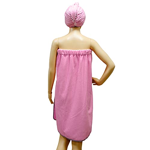 Polyte - telo bagno richiudibile - in microfibra ad asciugatura rapida e asciugamano per capelli - rosa - taglia unica - donna