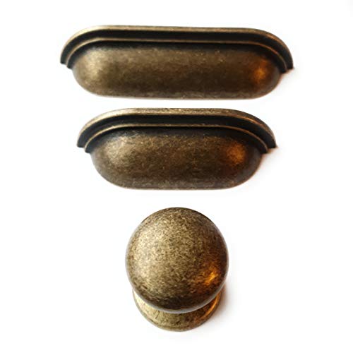 Set di 6 maniglie e pomelli in ottone anticato con viti