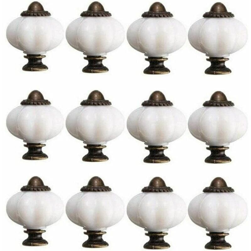 Pulluo Cabinet Knob rende i tuoi mobili più belli e pratici, aggiungendo un'atmosfera retrò sbiadire e arrugginire. Il pomello della porta in ceramica adotta la forma di zucca, la superficie è piatta e liscia, la presa è comoda e il colore è semplice e generoso.È un perfetto strumento e decorazione. Ogni pomello per mobile in porcellana è dotato di una vite adatta, questo riduce la difficoltà di trovare le viti per te. Specifiche Materiale: ceramica, lega di zinco Colore: bianco Dimensioni: 35x30mm < br/> Contenuto della confezione: Pomello per mobili x 12 Vite x 12