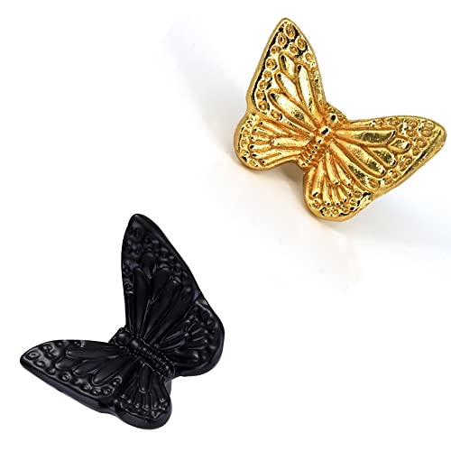 2 pomelli creativi per cassetti, a forma di farfalla dorata, maniglie per armadietti, armadietti, armadietti, armadietti, armadietti, cassettiere (D)