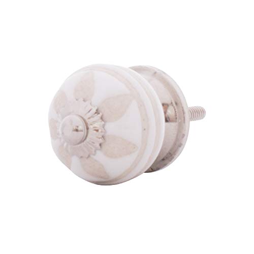 Disponibile in confezione singola o in set da 10: piccoli pomelli in ceramica dipinti a mano con corona decorativa argentata. Motivo in rilievo.