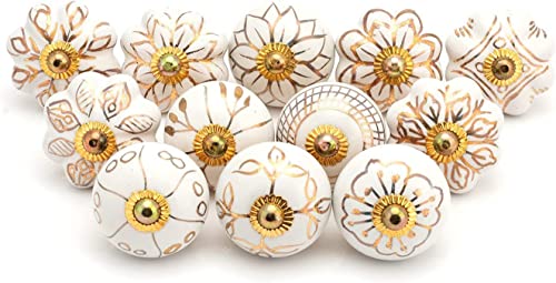 Pomelli per porte per armadi - Pomelli in ceramica dipinti a mano per cassettiera Boho Maniglie decorative - Oro assortito - Confezione da 6