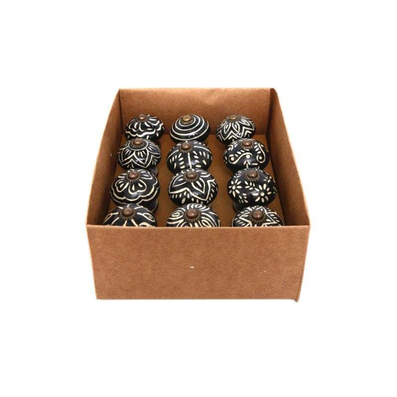 Aspect: Matériau principal: Céramique (80%) Matériaux secondaires: Fer (20%) Dimensions: Hauteur (en cm): 7 Longueur (en cm): 4,50 Profondeur (en cm): 4,50 Autres caractéristiques: Composition: Lot de 6 boutons de portes modèles aléatoires Poids (en kg): 0,06 Boutons de porte en céramique noir et crème (Lot de 6)