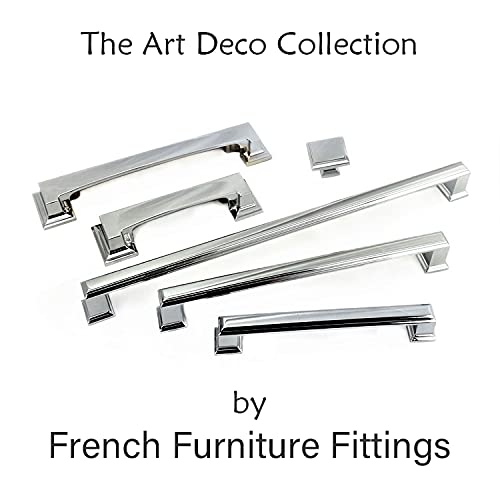 FFF, set di 6 pomelli quadrati in cromo lucido Art Deco per cucina, per credenza, cassetti, camera da letto, mobili, 32 mm quadrati