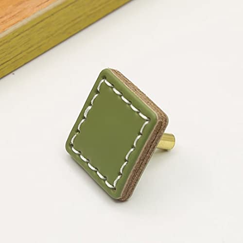 12 pomelli verdi per porte, credenze, cassetti e cassetti, per mobili da cucina, maniglie in pelle fatta a mano, foro singolo