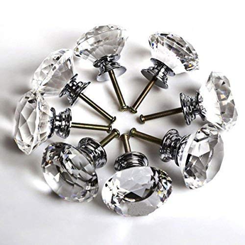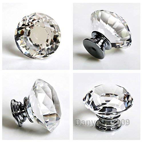 Set 8 pomelli in vetro trasparente, 40 mm, per maniglie di porte/cassetti, forma a diamante