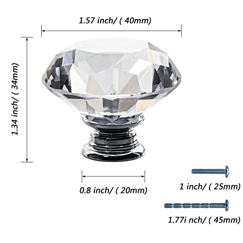 12 pomelli in vetro trasparente da 40 mm, per porte, armadi, armadi, cassetti, con viti, per casa, cucina, ufficio, armadietti, cassetti, decorazione