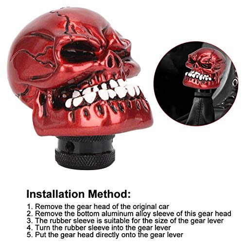 Pomello del cambio, Akozon leva del cranio in resina con leva manuale Pomello del cambio manuale Cambio adattatori cambio 8MM/10MM/12MM(Red)