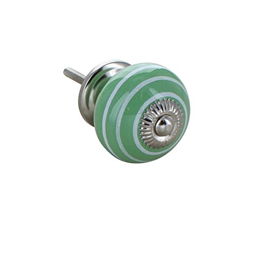 Pomello rotondo verde chiaro a strisce bianche, in ceramica, stile vintage shabby chic, per porte, armadi, cassetti