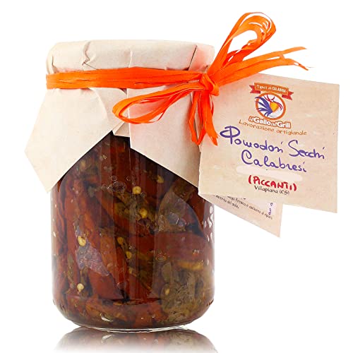 Pomodori Secchi Calabresi sott'olio rigorosamente extra vergine di oliva Calabrese in vasetto di vetro, riciclabile e riutilizzabile, da 280g.
