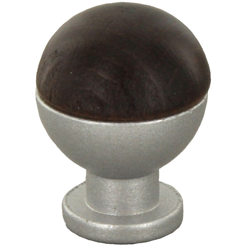 Pomolo per mobili art. 735/b in legno, basetta in ottone nichel satinato. diametro 18 mm noce scuro confezione blister (2 pz)