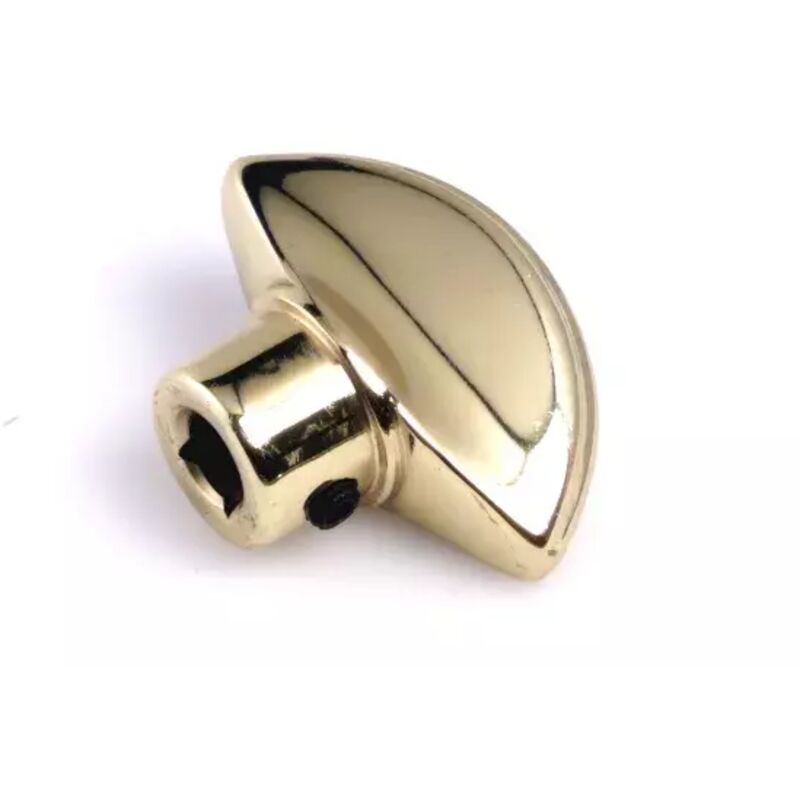 Pomolo per cilindro a codolo con impugnatura ovale in zama finitura ottone lucido verniciato.