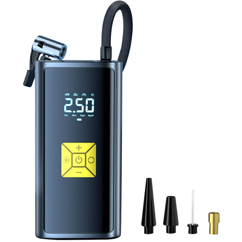 La pompa ad aria per auto intelligente consente di rilevare la pressione dei pneumatici sempre e ovunque e di rifiutare gli scoppi dei pneumatici causati da una pressione dei pneumatici troppo alta o troppo bassa, rendendo la guida più sicura. Specifiche: Modello: Non supporta l'uscita USB/Supporta l'uscita USB (opzionale) Materiale: ABS Tensione in ingresso: 5V/1A Potenza in uscita: 60W Intervallo di gonfiaggio: max. 150PSI Precisione: ±1,5PSI Unità: PSI, BAR, KPA, KG/CM2 Batteria: integrata da 7,4 V, 6000 mAh Batteria al litio Porta di ricarica: tipo C Dimensioni articolo: 158 * 80 * 52 mm/6,2 * 3,1 * 2,0 pollici Peso articolo: 465 g/ 16,4 once Dimensioni confezione: 180 * 120 * 100 mm/7,1 * 4,7 * 3,9 pollici Peso confezione: 695 g/24,5 once Lista di imballaggio: 1 * Host 1 * Air Tube 1 * Cavo USB 4 * Ugello 1 * Manuale