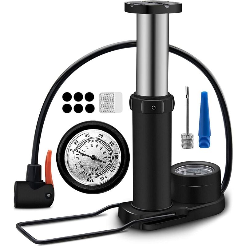 Gonfiabile veloce e con manometro - La pompa della bicicletta è dotata di un lungo tubo dell'aria flessibile con una pressione massima di 160 PSI/11 bar per garantire il massimo volume d'aria e un gonfiaggio più rapido degli pneumatici. Dotato di un manometro, puoi osservare le variazioni di pressione dei pneumatici nel tempo durante il gonfiaggio per soddisfare la pressione precisa per diverse biciclette e diversi terreni 【Ultra leggera e portatile】 questa bicicletta portatile con mini pompa è lunga 25 cm e pesa solo 450 grammi, estremamente compatto. Puoi metterlo nella borsa da viaggio o in tasca, rendendolo facile da trasportare quando esci. 【Multiuso】 Poiché la nostra pompa a mano è dotata di 2 configurazioni di valvole, puoi semplicemente sostituire le valvole Schrader e Presta. Non solo per il gonfiaggio dei pneumatici, viene fornito con un ago della benzina per gonfiare palloni sportivi come basket, calcio e rugby. Ideale anche per mountain bike e bici da strada, e-bike
