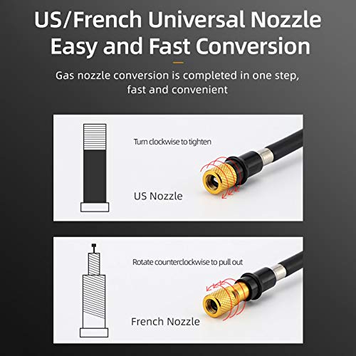 【DISPLAY LCD DIGITALE】 La pompa da ciclismo è dotata di un ugello dell'aria universale USA / Francia, manometro dell'aria e display LCD digitale. La pressione dell'aria è chiara a colpo d'occhio e la pressione massima è di circa 120 psi.