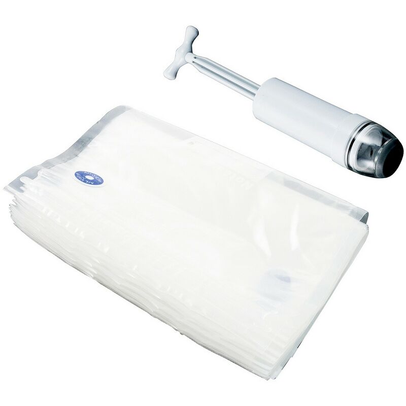 Composto da pompetta manuale 10 buste con zip per alimenti, cm 23x28 riutilizzabili