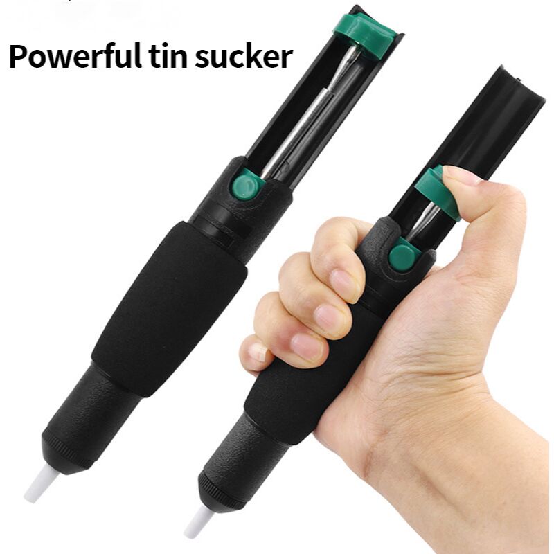 Imballaggio: scheda plug-in Materiale: ABS con rivestimento in spugna Peso: 78 g con imballaggio, 54 g senza imballaggio Intervallo di regolazione della temperatura: 300 (℃) Aspirazione: 35 (cm-Hg) Anello del gas: doppio anello Istruzioni: 1. Per prima cosa premi lo stantuffo dell'estrattore di latta finché non si blocca. 2. Riscalda il giunto di saldatura con un saldatore finché la saldatura non si scioglie. 3. Durante la rimozione del saldatore, collegare rapidamente l'ugello di aspirazione dello stagno al giunto di saldatura e premere il pulsante di aspirazione dello stagno. 4. L'aspirazione non è contemporaneamente pulita e l'operazione può essere ripetuta più volte. Suggerimenti per l'utilizzo dell'aspiratore di latta: 1. Assicurati che lo stantuffo dello stripper sia sigillato correttamente. Prima di accendere, tappare con le dita il foro della testa di aspirazione della latta e premere il pulsante. Se il pistone non esce facilmente significa che la tenuta è buona. 2. Il