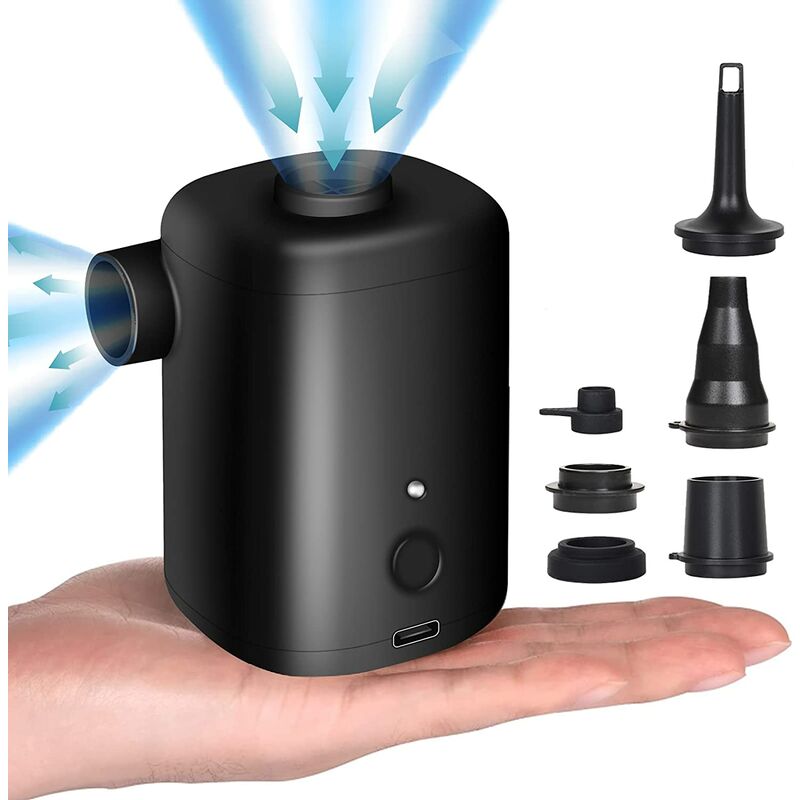 POTENTE POMPA AD ARIA ELETTRICA - La pompa ad aria è così potente che non solo può gonfiare gli oggetti, ma anche sgonfiarli inalando aria! 4 ugelli tra cui scegliere: abbiamo 4 ugelli di diverse dimensioni in la nostra pompa elettrica per materassi ad aria, che consente di gonfiare/sgonfiare diversi oggetti per ogni occasione! È adatto per prodotti gonfiabili come cuscino d'aria esterno, cuscino d'aria per auto, anello da nuoto, fila galleggiante d'acqua, custodia sottovuoto, ecc. Istruzioni per l'uso - La pompa del materassino gonfiabile è compatibile con l'alimentatore da 3000 mAh. Durante il gonfiaggio, basta posizionare la testa di gonfiaggio sulla porta di gonfiaggio e premere l'interruttore. Per sgonfiare, è necessario inserire la testa di gonfiaggio nel foro dell'aria, quindi premere l'interruttore per sgonfiare. La nostra pompa elettrica per materasso ad aria è semplice da usare. Versatile: include adattatori di alimentazione per auto e adattatori di alimentazione domestica.