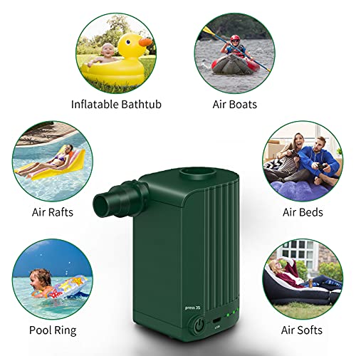 Pompa Elettrica, Morpilot Pompa ad aria Wireless con Ricarica USB, 3 Ugelli d'aria, Gonfiaggio/Sgonfiaggio Zattere Gonfiabili per Anelli da Nuoto, Divani Gonfiabili, Palline da Yoga, Verde