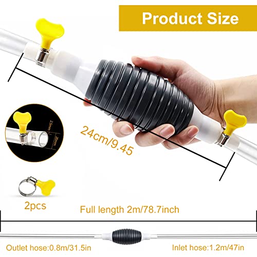 Pompa a mano ad alto flusso Sifone, Pompa di trasferimento con Tubo a Sifone 2M Pompa a Mano a Benzina Sifone Siphon Hose Pump per Barca Auto Veicolo Diesel Benzina Olio Acqua