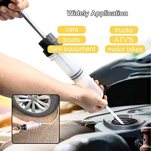 [Ampia applicazione]: La pompa dell'olio della siringa può essere utilizzata per aggiungere e rimuovere il liquido in varie occasioni, adatta per estrarre o sostituire l'olio motore o l'olio lubrificante in automobili, navi, attrezzature agricole, riduttori industriali, tosaerba, motocicli, camper, ecc, la pompa di estrazione del fluido è progettata per fornire un metodo di sostituzione semplice e veloce.