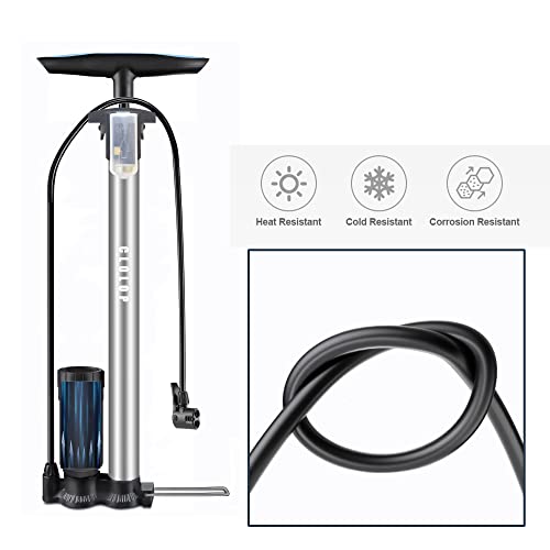 Pompa da Pavimento per Bici con Manometro, Pompa per Pneumatici per Bici ad Alta Pressione con Valvola Presta e Schrader Pompa per Bicicletta Portatile per Palloni Sportivi MTB per Bici da Strada