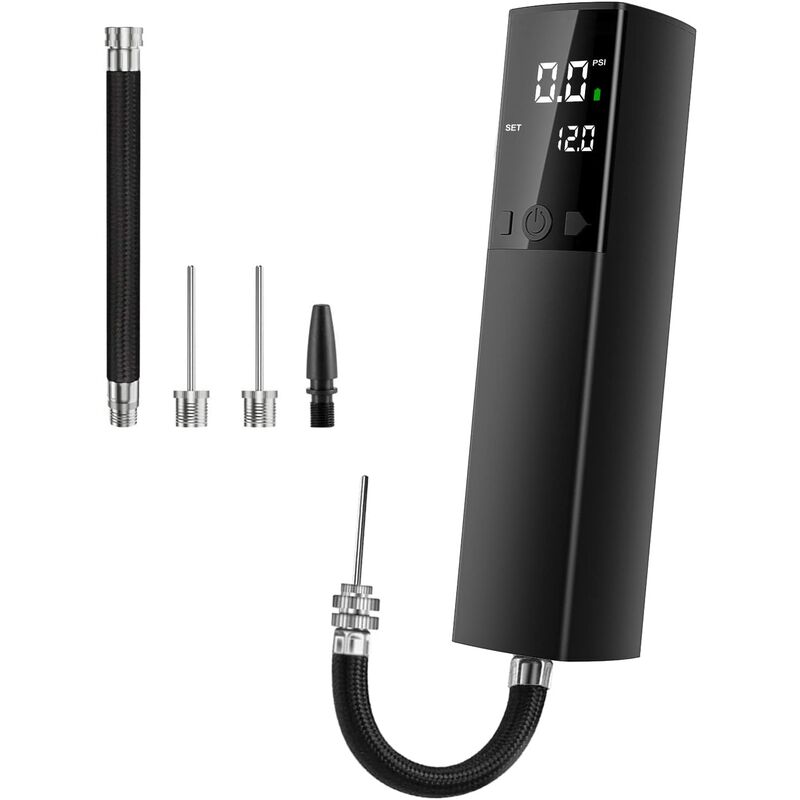 Pompa a sfera elettrica automatica - La pompa a sfera elettrica è dotata di rilevamento della pressione intelligente e funzione di arresto, che può essere precisa fino a 0,1 PSI.Basta impostare il PSI della sfera corretto, premere il pulsante di avvio e una volta raggiunta la pressione preimpostata, si fermerà. automaticamente l'inflazione. Intelligente e facile da usare per semplificarti la vita. 【Design portatile e compatto】 Dimensioni: 6,29 x 1,57 x 1,57 pollici, peso: 0,55 libbre/210 g, adatto per riporre borse, stivali o persino borse. Ti permette di portare con te questa mini pompa ovunque sia necessario per mantenere le palle gonfie. Le luci a LED luminose e il display LCD retroilluminato facilitano l'uso della pompa a sfera di notte o in luoghi bui. 【Pompa a sfera veloce/vivavoce/risparmio energetico】Volume d'aria in ingresso: 4L/m, ci vogliono solo 1-2 minuti per completare il gonfiaggio del palloncino. Risparmia più energia per colpire i tuoi avversari. Il manometro digitale