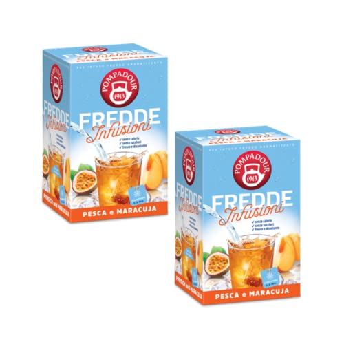Pompadour 1913 | Fredde Infusioni Pesca e Maracuja Bustine per Infuso in Acqua Fredda - 2 x 18 Bustine di Tè (45 Gr)