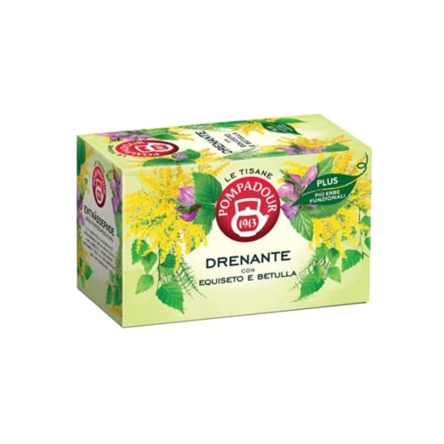 Pompadour 1913 | Tisana Drenante Plus a Base di Erbe Aromatiche | Infuso con Equiseto e Betulla - 18 Bustine di Tè (39.6 Gr)