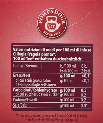 Pompadour - Ciliegia Fragola, Mix alla Frutta per Infuso - 2 confezioni da 20 filtri [40 filtri]