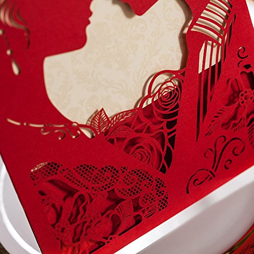 PONATIA 20PCS Lacer Cut wedding Invitations Cards con sposa e sposo bacio vuoto-fuori fidanzamento matrimonio inviti Red