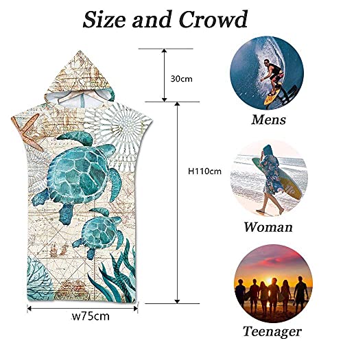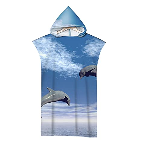 Poncho Asciugamano con Cappuccio 75x110cm 3D Stampa Delfino Animale Adulto Spiaggia Robe Cambiarsi Donna Uomo Assorbente Telo da Bagno Asciugatura Rapida Copricostume Surf Nuoto