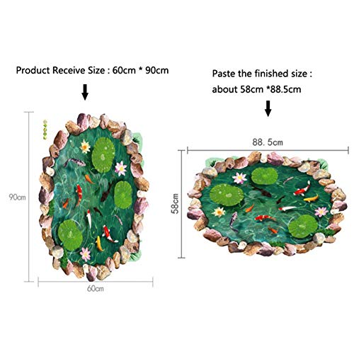3D Pond Pesce Piano Sticker Bagno Soggiorno Piano Decoration Murale per La Decorazione Domestica Parete Stickers-Friendly Impermeabile Wallpaper Stickers