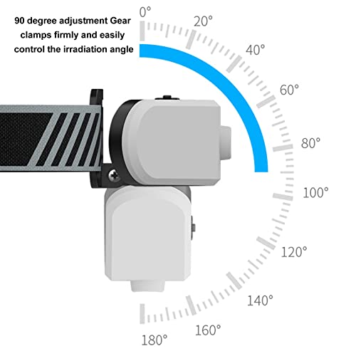 REGOLABILE: la lampada frontale può essere regolata di 90 gradi, gli ingranaggi scattano saldamente, è facile controllare l'angolo di irradiazione e liberare le mani, più comodo e umano da usare.