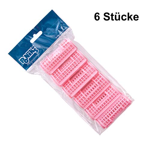 Ponik's - Set di 6 bigodini in plastica, 28 mm, colore: Rosa