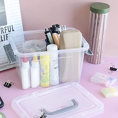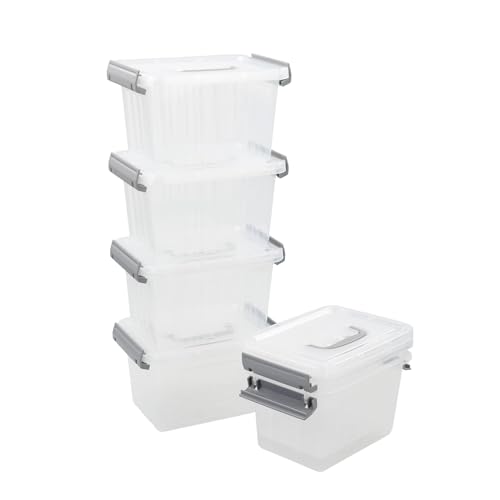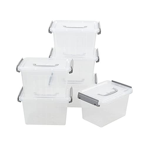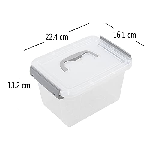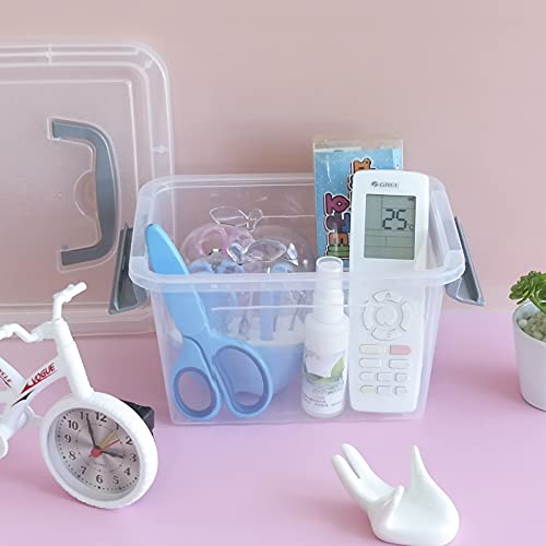 Ponpong Scatola portaoggetti in plastica trasparente da 3 L, piccola scatola con chiusura a scatto con coperchio, 6 confezioni