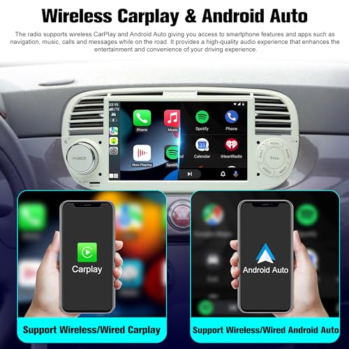 [Wireless Carpaly Android Auto per FI AT 500] Nessuno stress per gli occhi anche in pieno giorno grazie al nostro touchscreen completo con pulsanti vivaci 7 combinazioni di colori per FI AT 500 (2007-2016). Questa autoradio per FI AT 500 (2007-2016) è compatibile con iOS carplay wireless Android auto, consentendo dovrai connetterti con il tuo smartphone per navigare in Internet e scaricare le app che volevi.
