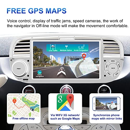[Navigazione GPS offline e online] L'autoradio per FI AT 500 è dotata di antenna GPS e file mappa offline. Puoi anche utilizzare la navigazione GPS online come per Google Map tramite Wi-Fi o hotspot. Non ti preoccuperai di Internet nemmeno alla velocità dell'autostrada o in varie condizioni meteorologiche. Combinato con un touch screen ben progettato e una telecamera per la retromarcia, questa autoradio offrirà assolutamente un'esperienza di guida migliore.