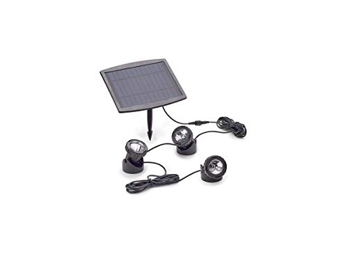 Set di illuminazione composto da tre piccoli luce LED e un pannello solare con batteria agli ioni di litio e spiedino di terra
