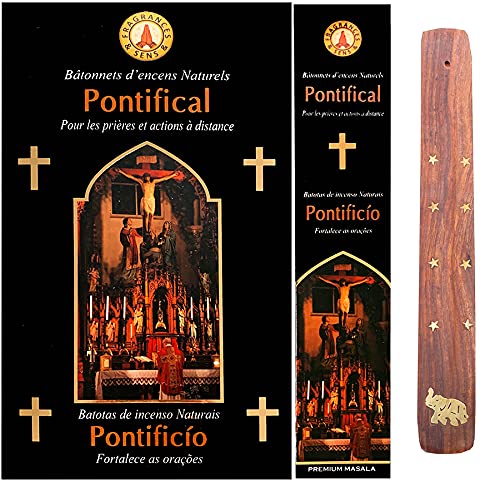 PONTIFICIO bastoncini incensi religiosi da 15 gr. PONTIFICAL Olibano Mirra Benzoino Storax FRAGANCES & SENS no tossico no lavoro minori + portaincenso (3 scatole da 15 gr.)